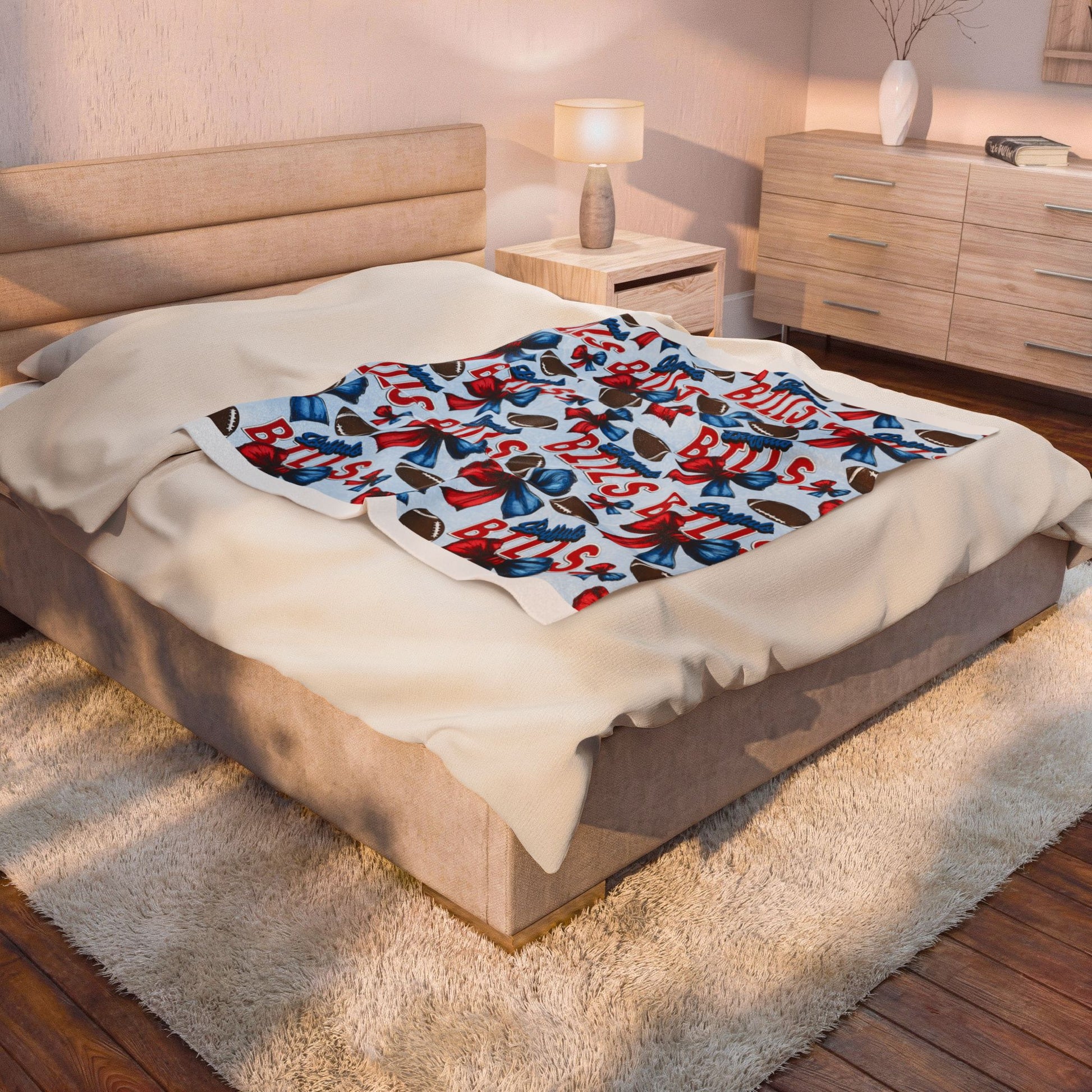 American Flag Bow Velveteen Plush Blanket — Patriotic 4th of July Throw