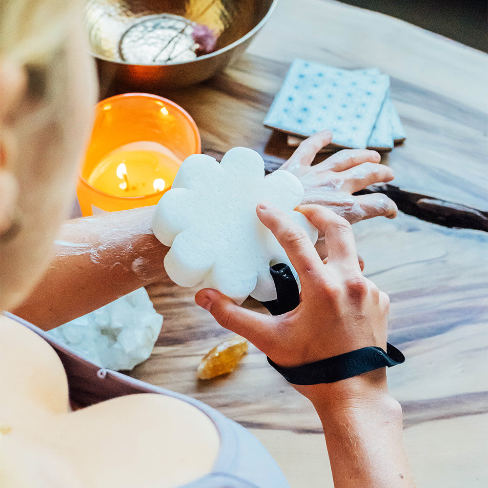 Glide along our hydrating bath sponge to soothe and buff for a dreamy-soft complexion, every time.