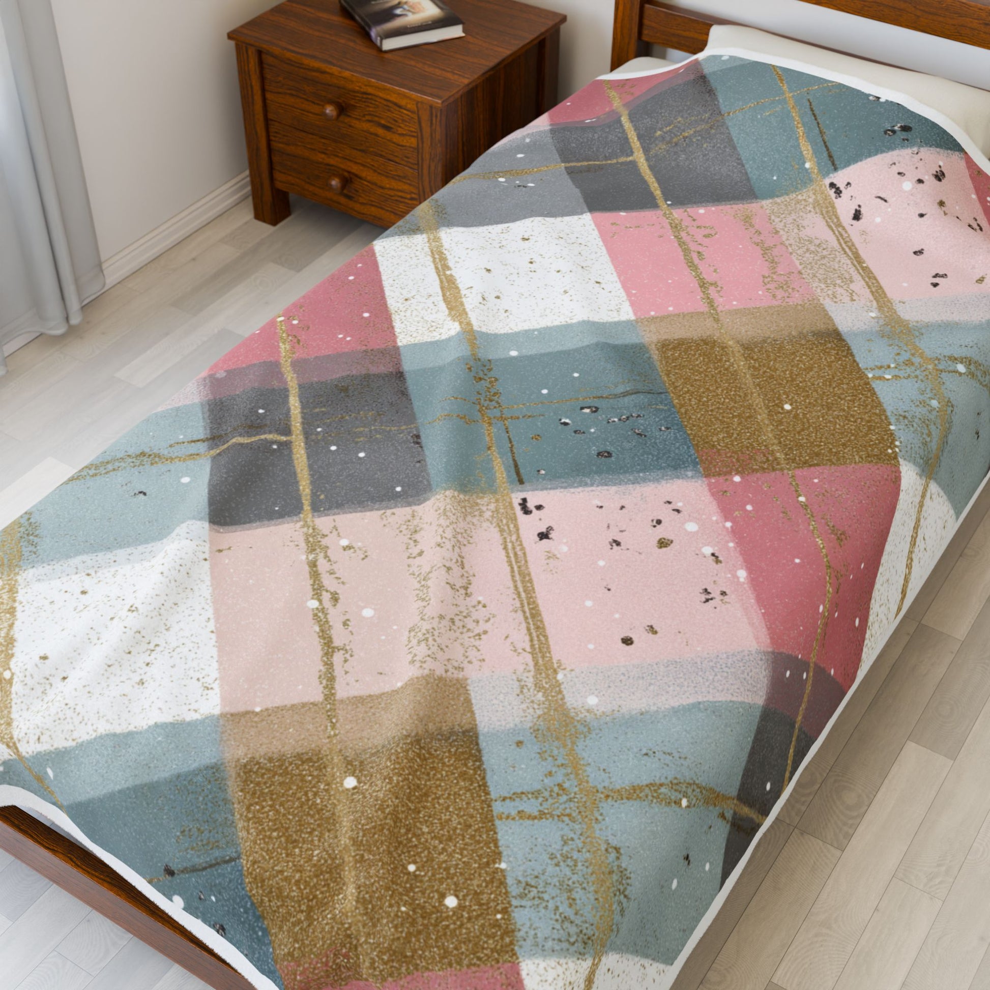 Wrap yourself in a soft layer of calm with this velvety plush blanket. The muted pinks, blues, warm ochres, and subtle gold accents form a gentle plaid that feels like a quiet afternoon—book in hand, tea warm at your side. Lightweight yet cozy, the blanket drapes easily over a sofa or across your knees, adding a touch of lived-in comfort and handcrafted charm to a reading nook or bedroom. The printed face keeps colors vivid while the reverse stays smooth and neutral, so it blends with everyday decor without shouting. Reach for it on cool mornings, during slow weekend rituals, or when you want to turn a little corner of the house into a soft, intentional pause.